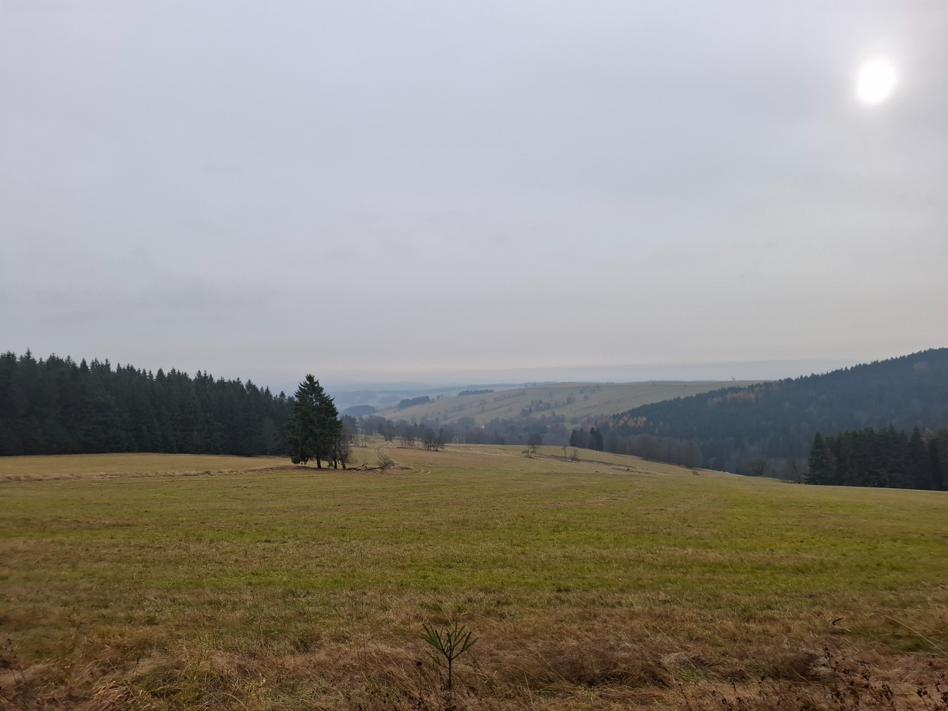 Prošla jsem pomalu se probouzející obec a začala stoupat zpět po včerejší trase. Ještě jednou jsem se ohlédla zpět a už jsem šlapala dál. Byla dost mlha, ale to byla i před víc než rokem v červenci, když jsem odtud odcházela poprvé. Pěšky jsem došla zpět do Rokytnice.
