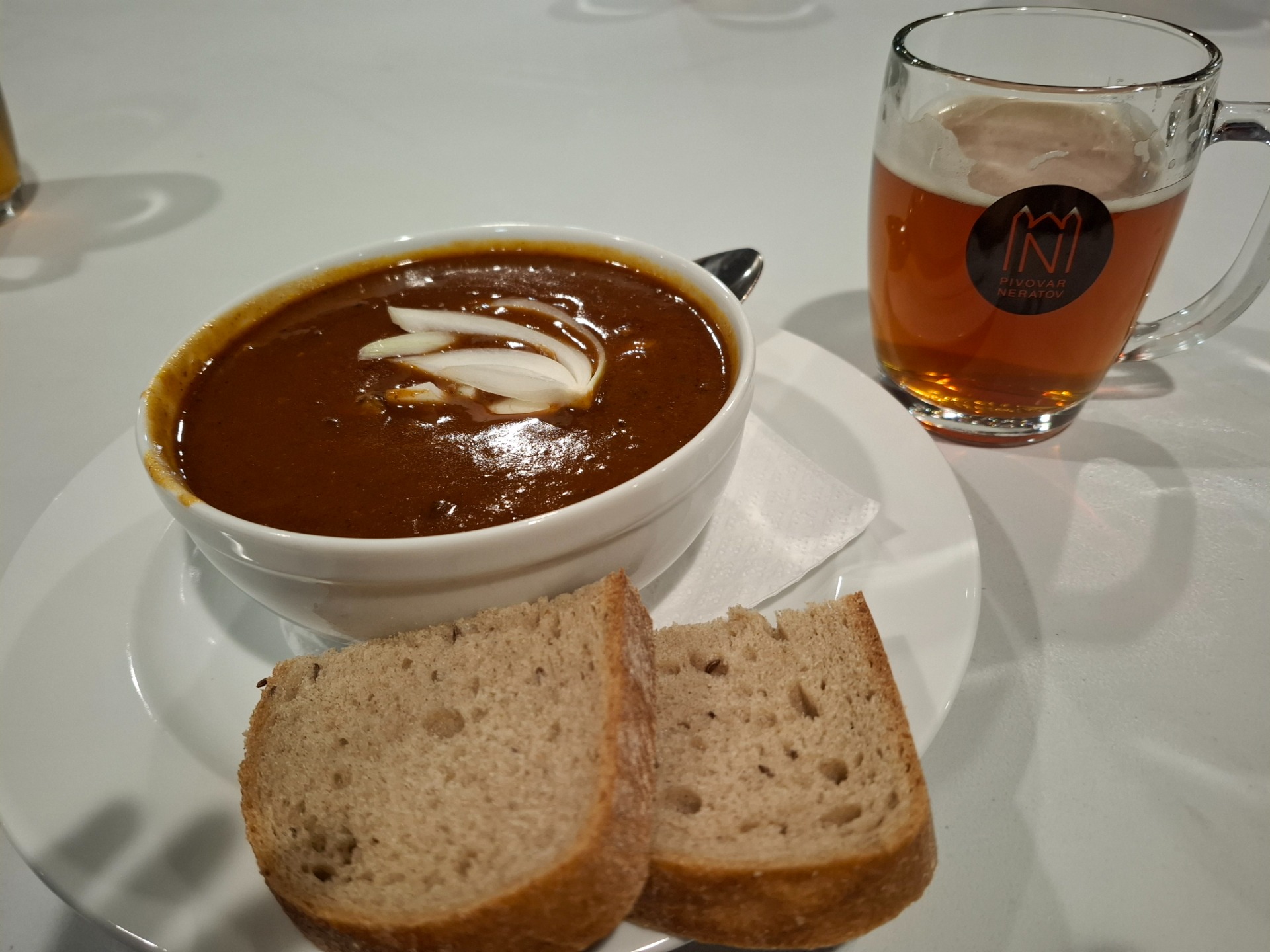 S Viktorem jsme si došly na guláš. Přidala jsem k němu ještě malé pivko. Opět jsme pokecali s Broumovským párem. Od osmi hodin začalo poslední povídání o plánech do budoucna. Kolem půl desáté jsem se rozloučila s Viktorem a šla obloukem kolem kostela na ubytování.