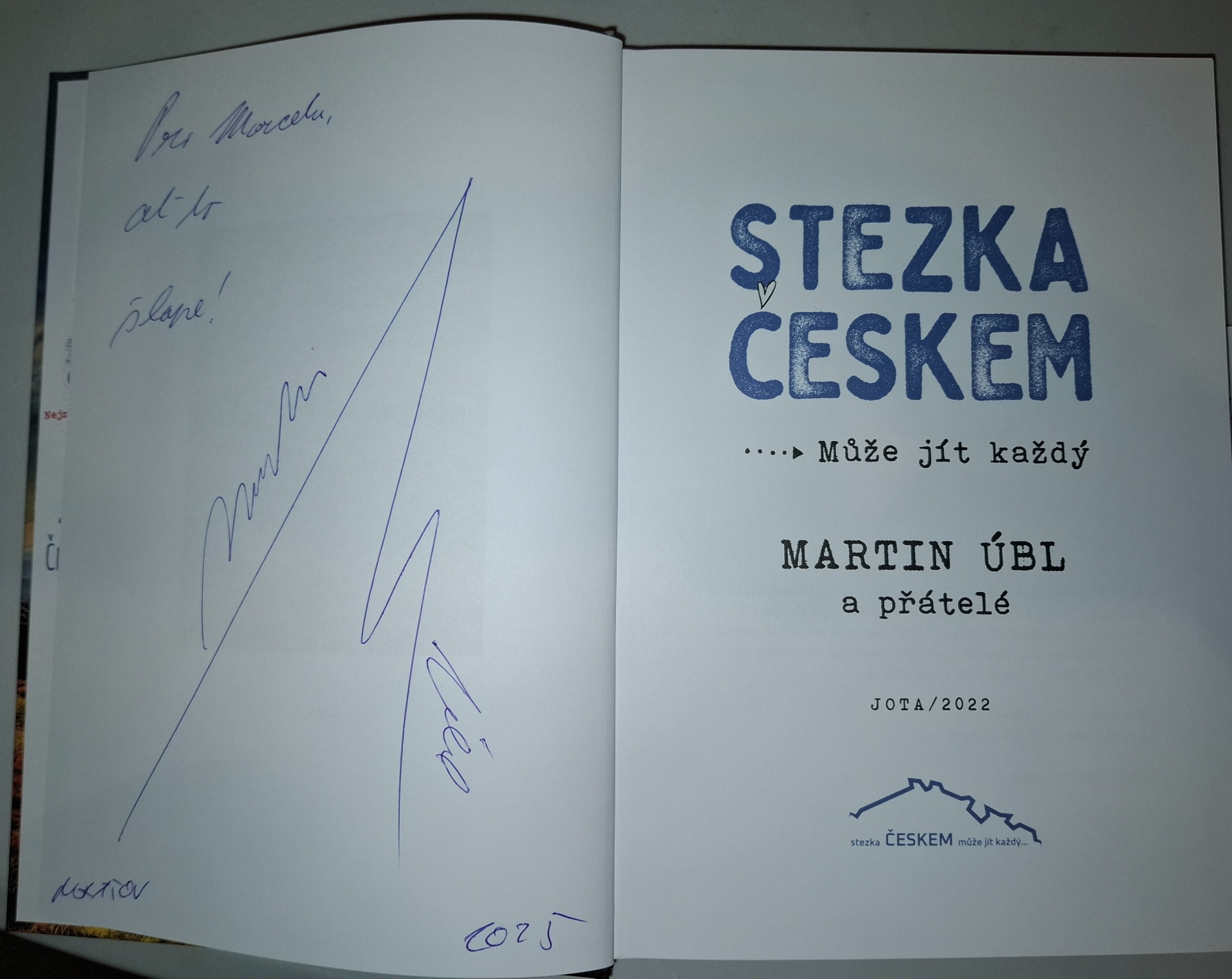 Po prohlídce jsme se vrátili do bistra. Stoupla jsem si do fronty a čekala na pivko. Víc ve předu stál Viktor. Mrknul na mě a vzal ode mne lístek na pivo. Oba jsme mysleli, že bude točené. Dostali jsme dvě litrové lahve. Viktor tedy koupil ještě dvě čepovaná a šli jsme si sednout na přednášku o Stezce. Následovalo vtipné povídání o vývoji Stezky, stezkařich a andělých. Vše trvalo do sedmi hodin. Došla jsem si pro ještě jednu našivku Stezky a když jsem viděla, že Martin podepisuje knihy, koupila jsem si první díl Stezky. Sice jí mám v audio verzi několikrát přeposlouchanou, ale tištěná má pěkné fotografie. Vystála jsem si frontu a nechala knihu podepsat a nejen to. Dokonce jsem si udělala fotku s Martinem. To už jsem překročila hodně sama sebe.