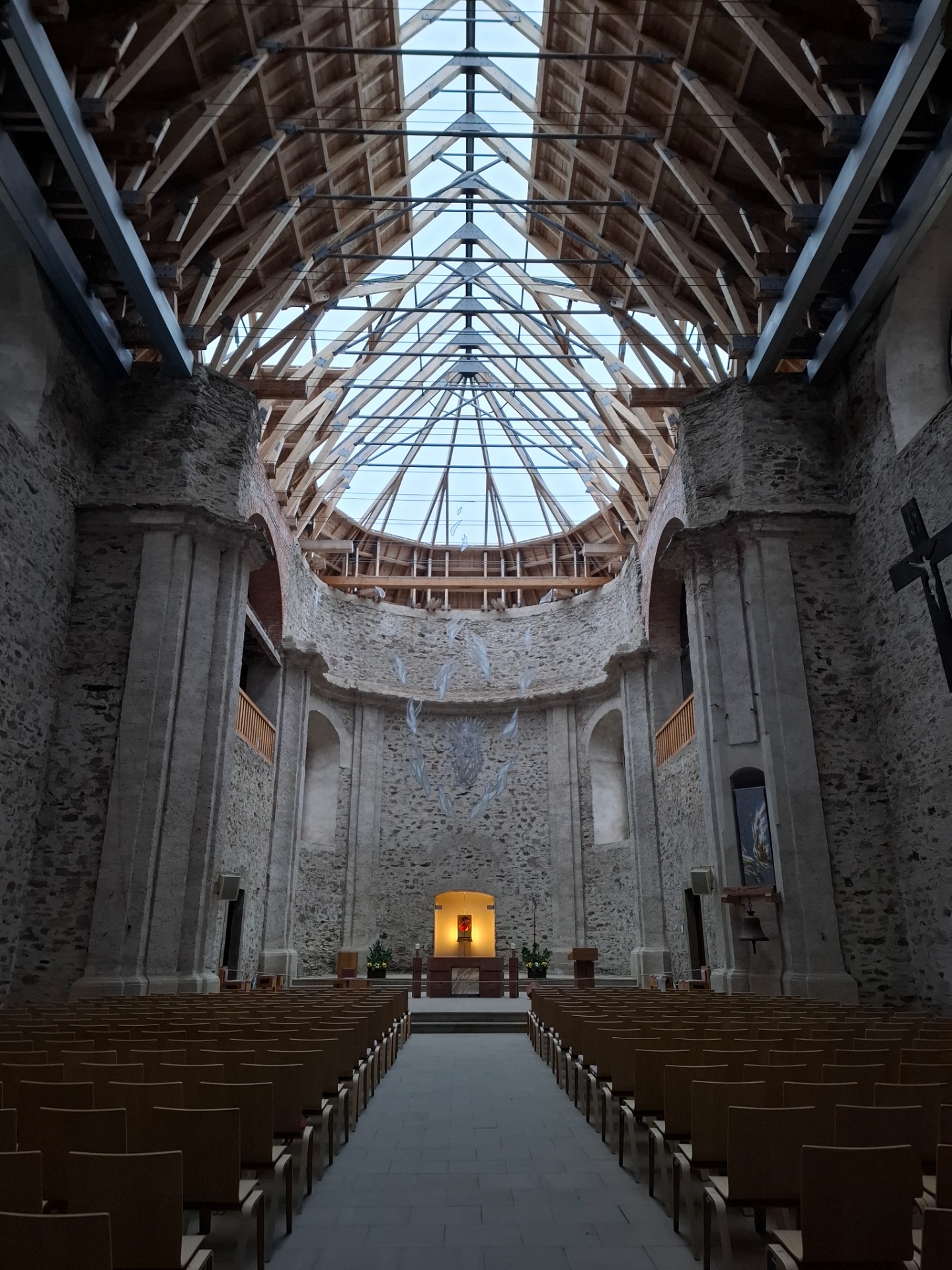 Před 16h jsme se přesunuli do kostela. Zde jsme vyslechli povídání o historii kostela a mohli si ho prohlédnout. Tohle jsem při minulé návštěvě nestihla. Vyšla jsem až nad varhany a užívala si pohled na osvětlený kostel, jehož rekonstrukce nebyla jednoduchá. A to vše díky jednomu opilému ruskému vojákovi, který výstřelem z panceřové pěsti podpálil v rámci osvobození jeho střechu. Nyní je ale kostel opět krásný a má genius loci.