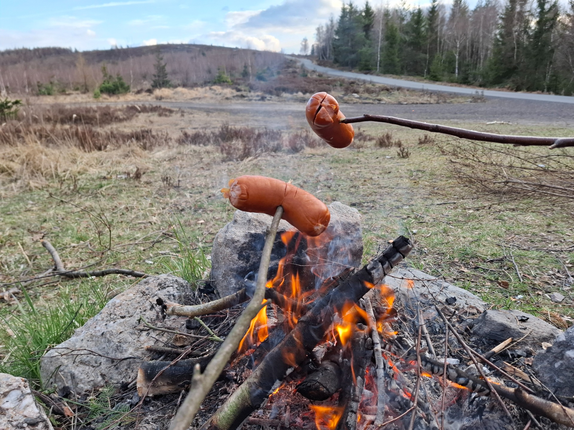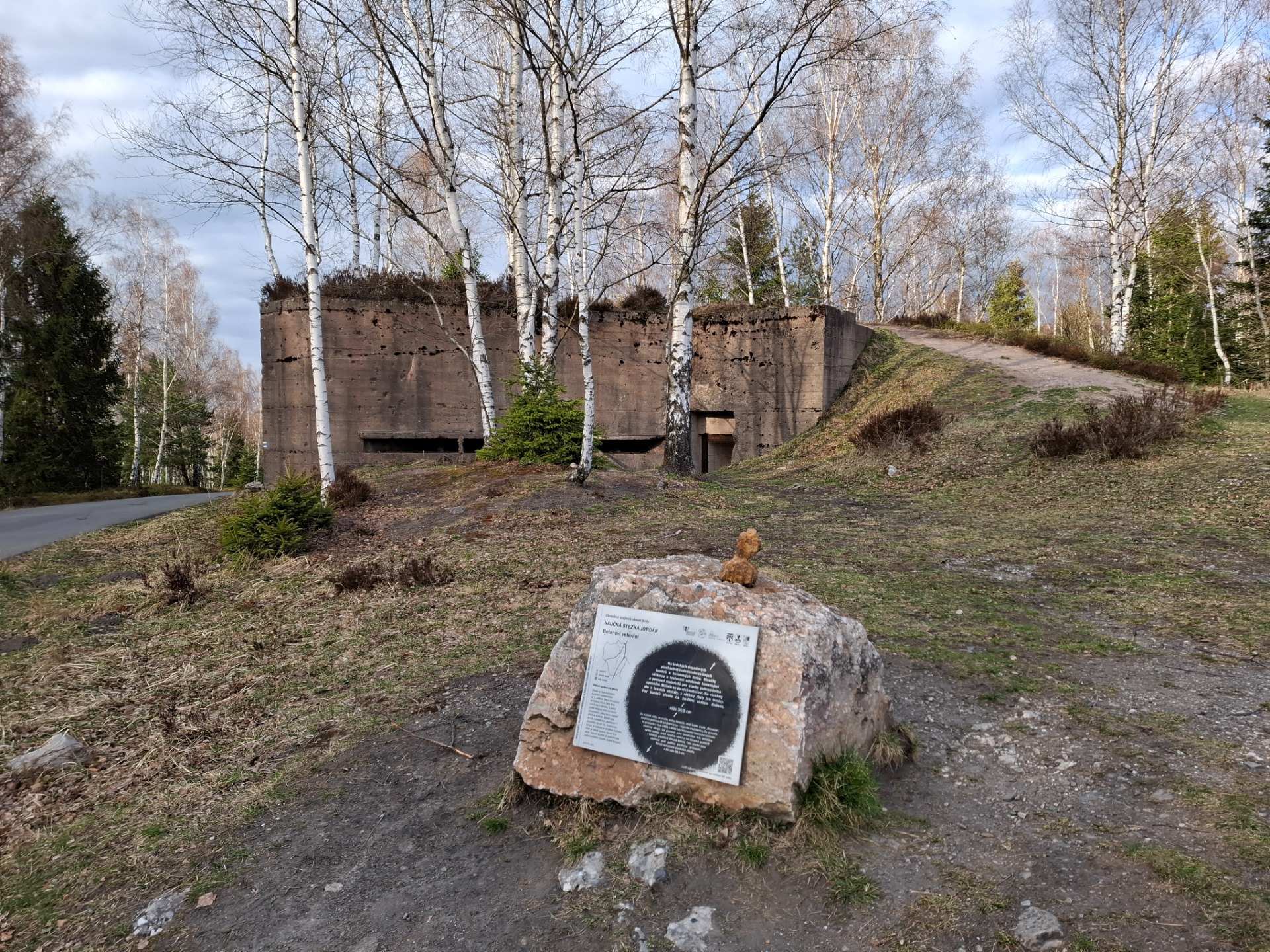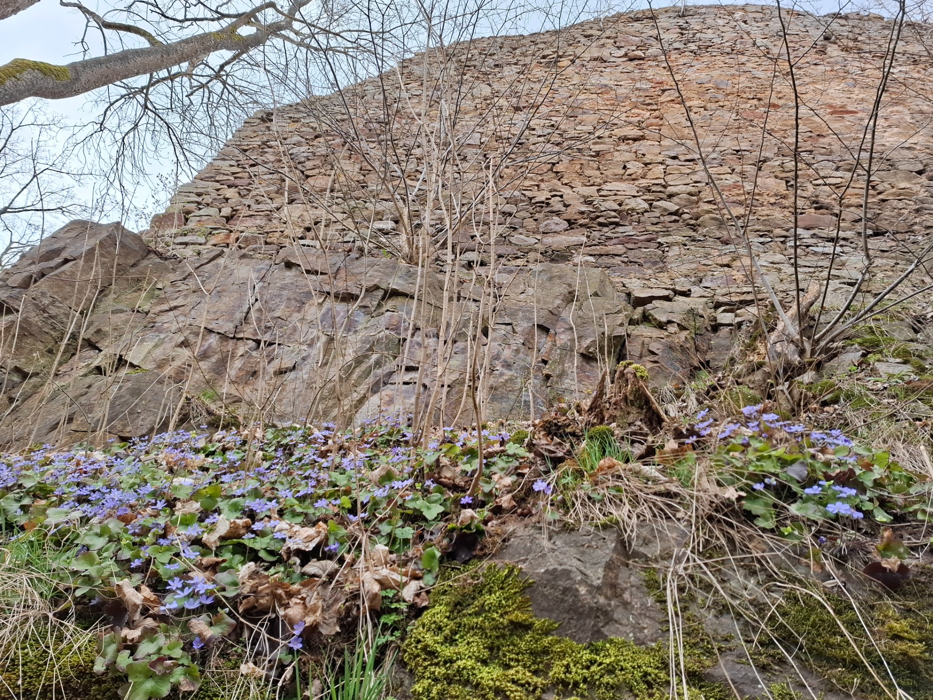 Na Stezce jsme se potkala s Romanem - Toulavým vlkem. V lednu jsem navštívila jeho přednášku o cestě po trase SNP. Slíbili jsme si, že spolu někam vyrazíme a nakonec to vyšlo. Naplánovala jsem trasu. Roman vyrazil už ve čtvrtek z Mníšku pod Brdy. Přespal u Velkého Chlumce. Já odsloužila noční službu a kolegyně mě ráno vzala autem do Hostomic. Zde na mě čekal Roman v Kafárně. Uvítali jsme se a vyrazili vstříc dobrodružství. Prošli jsme obec Běšín a kolem Plešiveckého viklanu vystoupali na Čertovu kazatelnu. Zde se spolu s námi kochalo výhledy i pár dalších lidí. Počasí nám přálo a my si mohli užívat krásných výhledů do kraje. Přes Rejkovice jsme šlapali dál do Křešína. Občerstvení bylo bohužel zavřené, proto jsme pojedli z vlastních zdrojů. V Křešíně měli krásnou velikonoční výzdobu a kozí farmu. Místní holčička krmila a nabádala kozla, aby jedl. Ten jí ale moc neposlouchal. Docela nás to pobavilo. Po pauze jsme pokračovali dál do kopců k zřícenině hradu Valdek, který byl obsypán modrými květy. Z hradu byla v dálce vidět Jindřichova skála, na které už Roman byl. Pomalu se blížil večer a my začali pomýšlet na ukončení cesty. Ještě jsme potřebovali doplnit vodu, proto jsme udělali odbočku k Mariině studánce. Vody zde bylo dost. Doplnili jsme lahve a kousek se vrátili. Roman věděl, že u jednoho bunkru pod vrcholem Houpáku je ohniště a skutečně bylo. Zde jsme tedy ukončili naší cestu a Roman zapálil oheň. Já obstarala klacky na opečení skvělých buřtů, které koupil Roman. Já k tomu přidala pivko z našeho Hostivařského pivovaru. Pomalu zapadalo sluníčko. Najedli jsme se a uložili ke spánku.