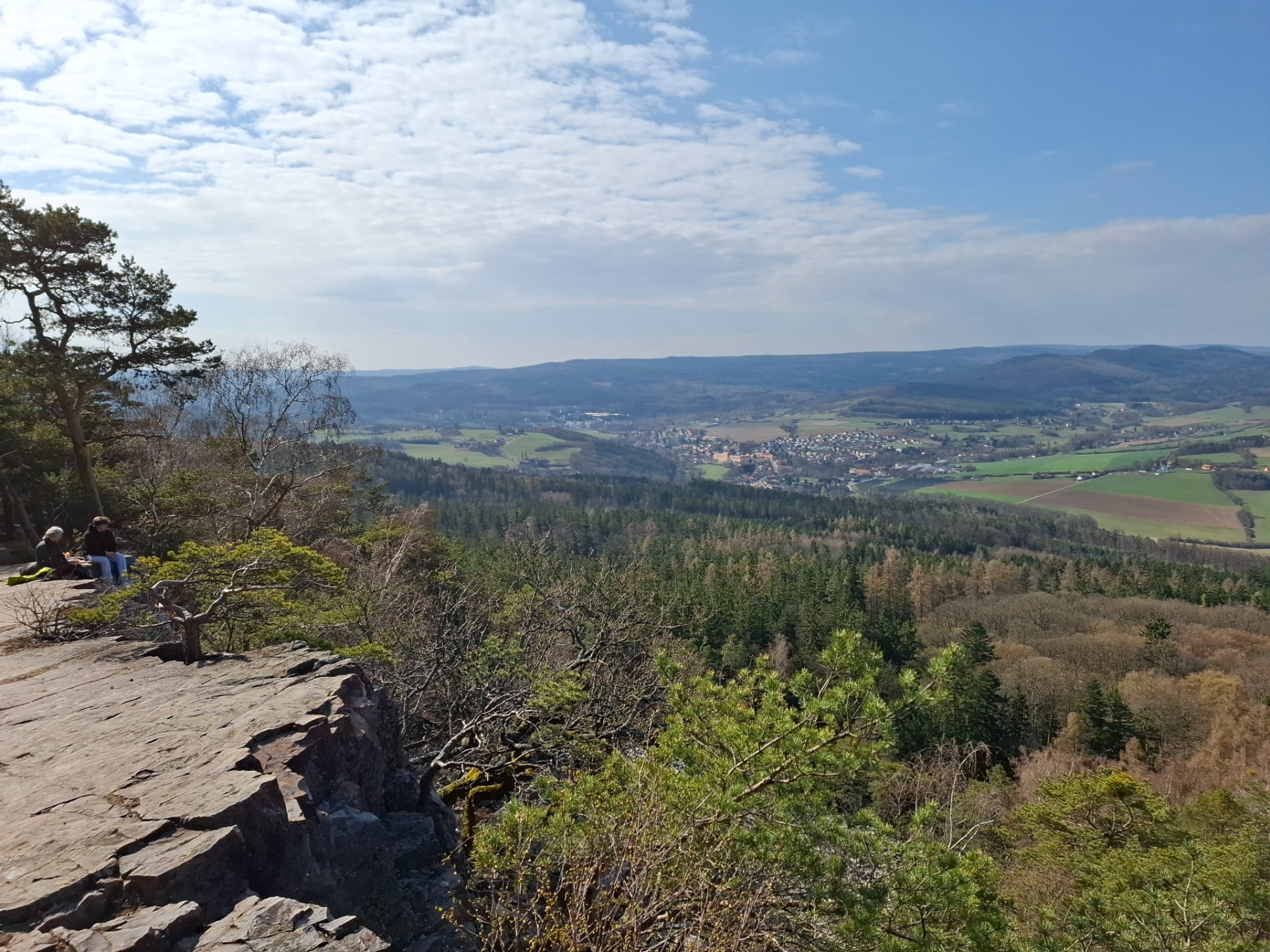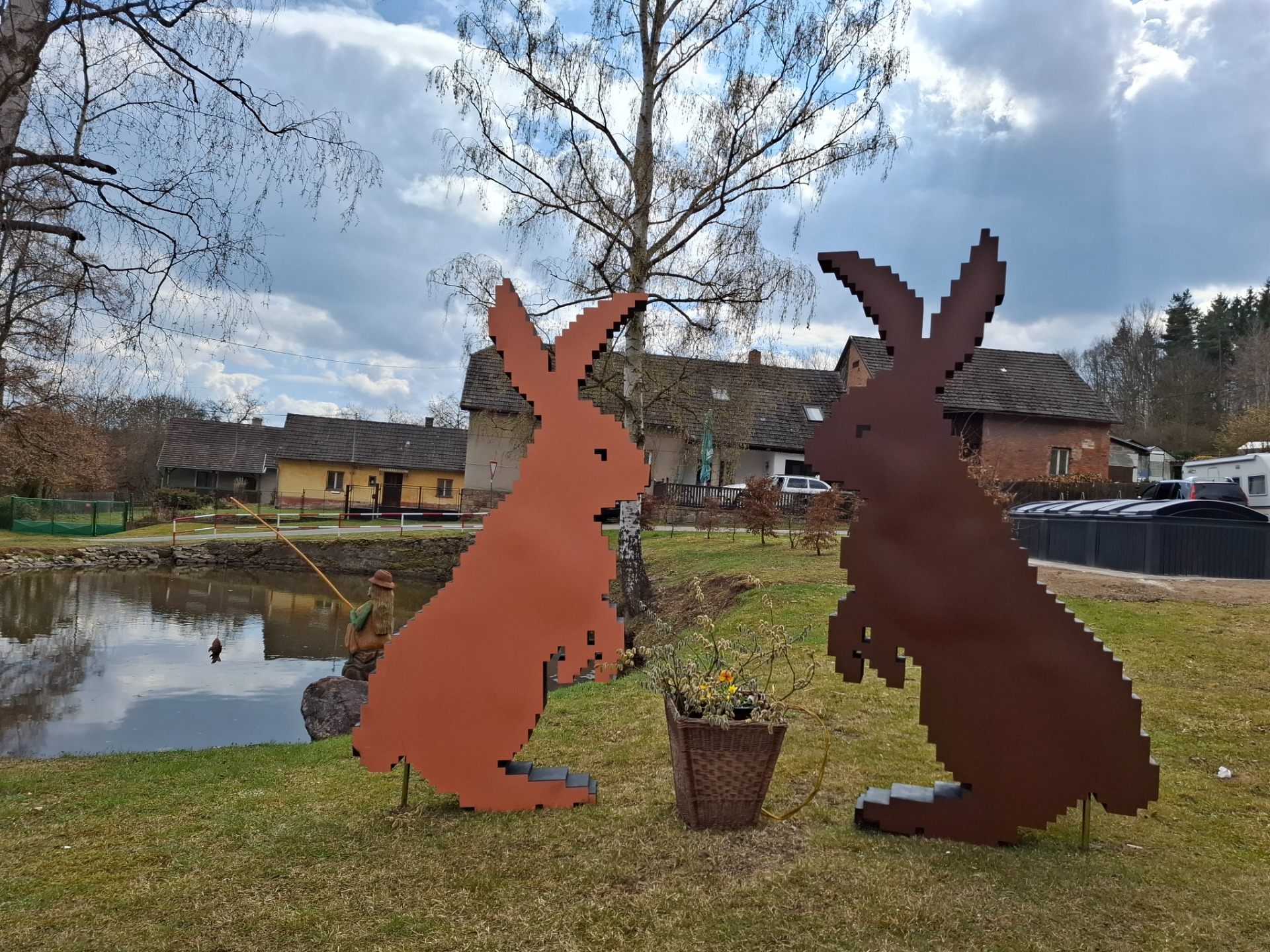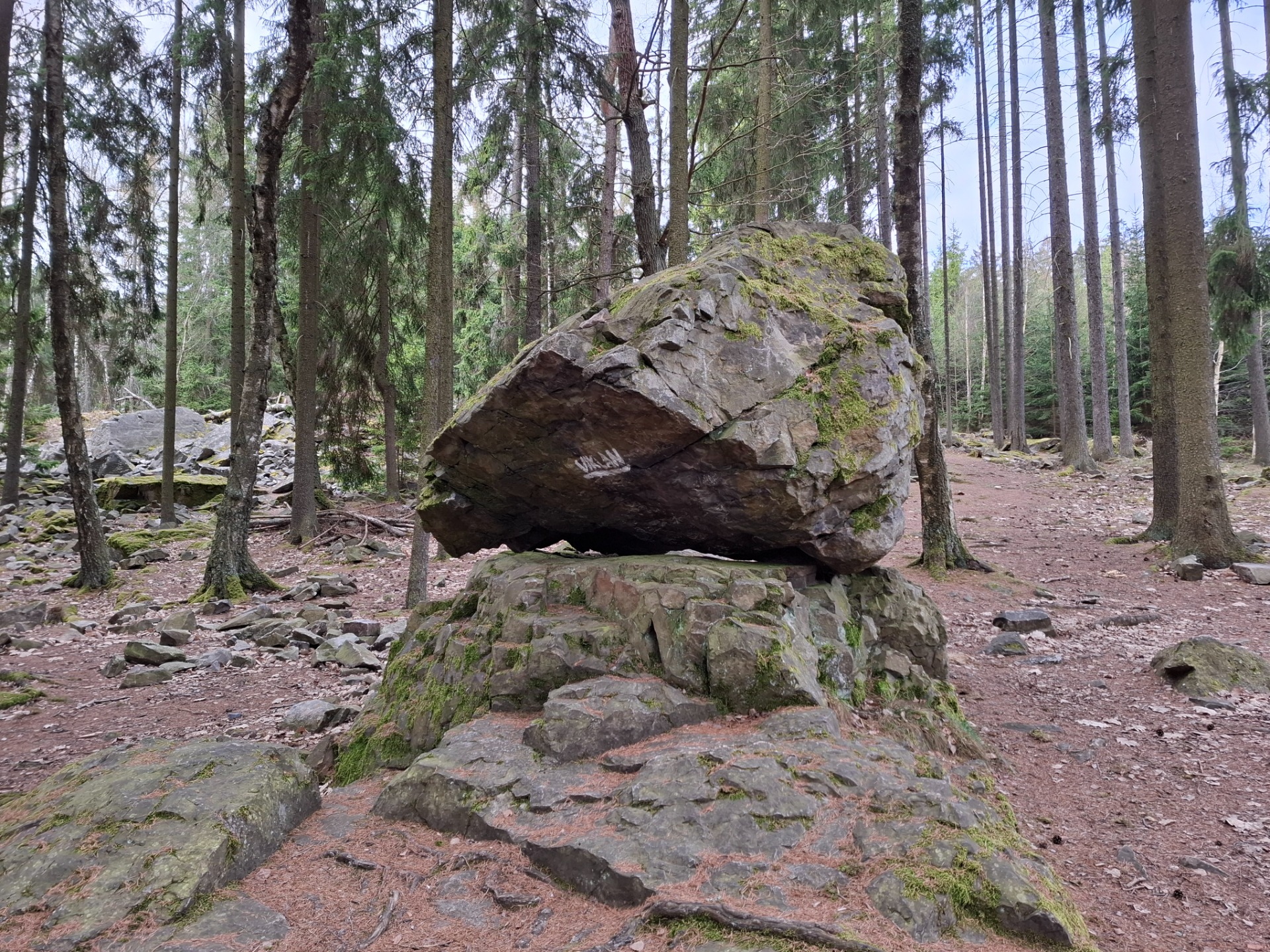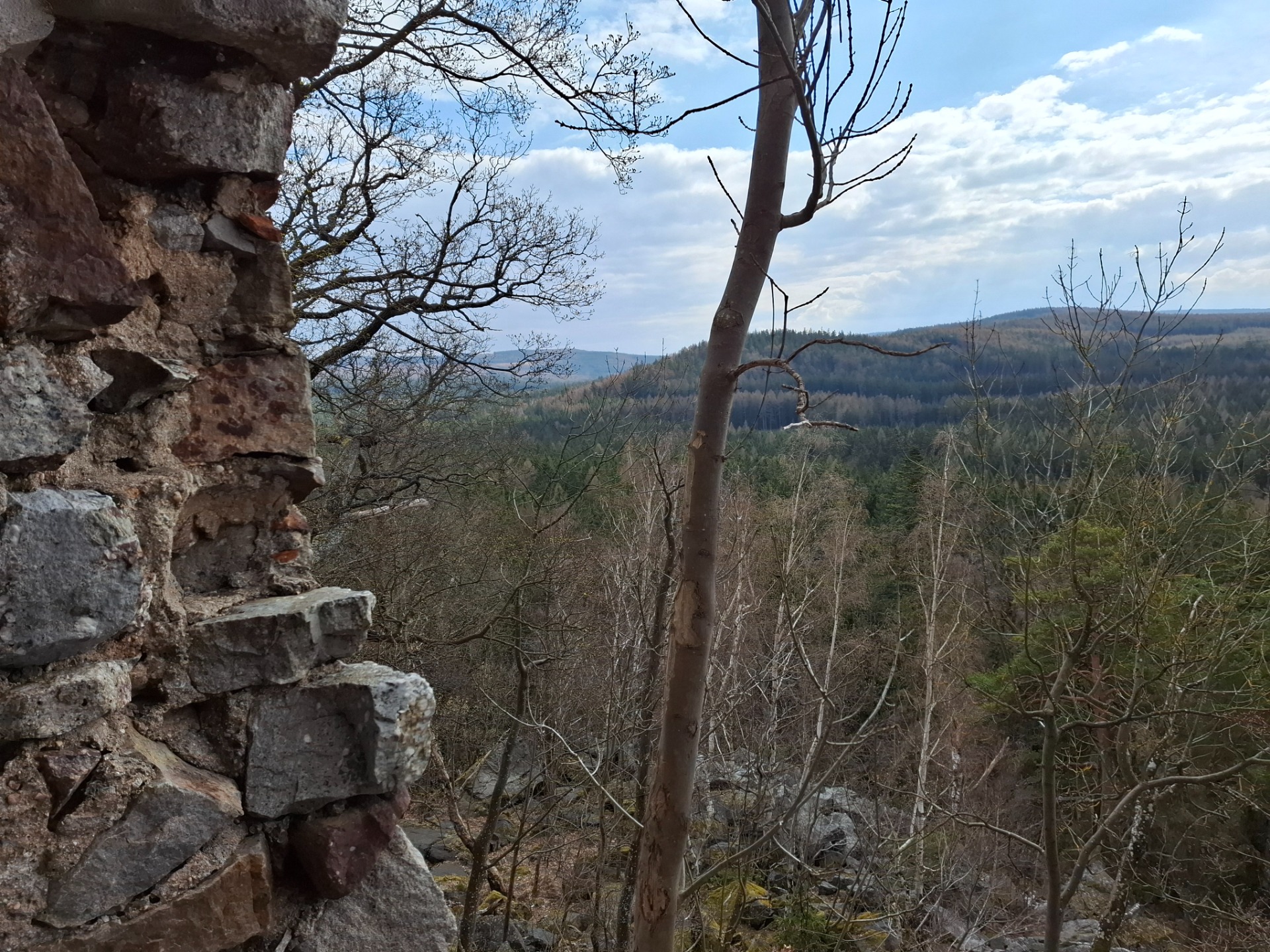 Na Stezce jsme se potkala s Romanem - Toulavým vlkem. V lednu jsem navštívila jeho přednášku o cestě po trase SNP. Slíbili jsme si, že spolu někam vyrazíme a nakonec to vyšlo. Naplánovala jsem trasu. Roman vyrazil už ve čtvrtek z Mníšku pod Brdy. Přespal u Velkého Chlumce. Já odsloužila noční službu a kolegyně mě ráno vzala autem do Hostomic. Zde na mě čekal Roman v Kafárně. Uvítali jsme se a vyrazili vstříc dobrodružství. Prošli jsme obec Běšín a kolem Plešiveckého viklanu vystoupali na Čertovu kazatelnu. Zde se spolu s námi kochalo výhledy i pár dalších lidí. Počasí nám přálo a my si mohli užívat krásných výhledů do kraje. Přes Rejkovice jsme šlapali dál do Křešína. Občerstvení bylo bohužel zavřené, proto jsme pojedli z vlastních zdrojů. V Křešíně měli krásnou velikonoční výzdobu a kozí farmu. Místní holčička krmila a nabádala kozla, aby jedl. Ten jí ale moc neposlouchal. Docela nás to pobavilo. Po pauze jsme pokračovali dál do kopců k zřícenině hradu Valdek, který byl obsypán modrými květy. Z hradu byla v dálce vidět Jindřichova skála, na které už Roman byl. Pomalu se blížil večer a my začali pomýšlet na ukončení cesty. Ještě jsme potřebovali doplnit vodu, proto jsme udělali odbočku k Mariině studánce. Vody zde bylo dost. Doplnili jsme lahve a kousek se vrátili. Roman věděl, že u jednoho bunkru pod vrcholem Houpáku je ohniště a skutečně bylo. Zde jsme tedy ukončili naší cestu a Roman zapálil oheň. Já obstarala klacky na opečení skvělých buřtů, které koupil Roman. Já k tomu přidala pivko z našeho Hostivařského pivovaru. Pomalu zapadalo sluníčko. Najedli jsme se a uložili ke spánku.