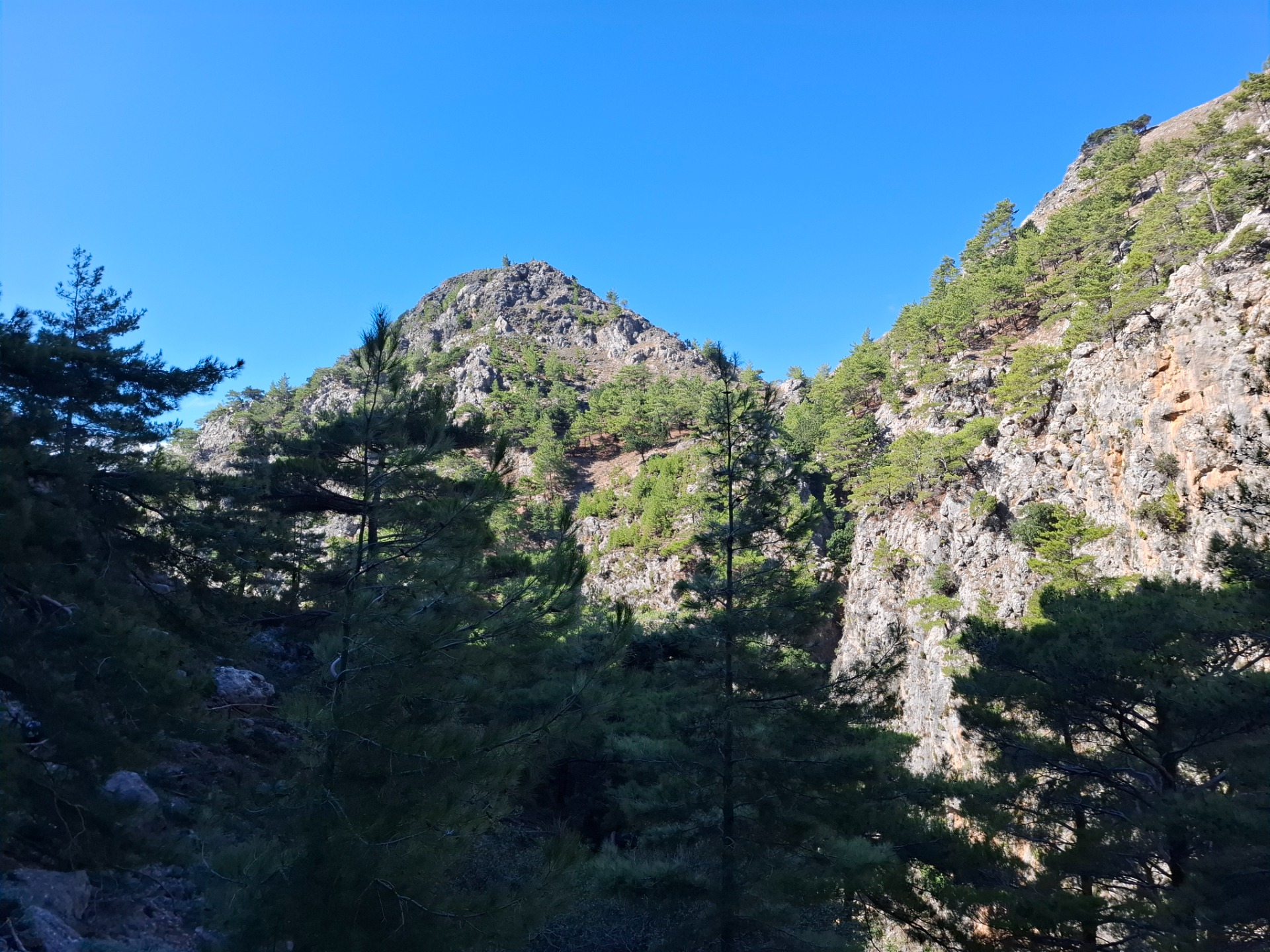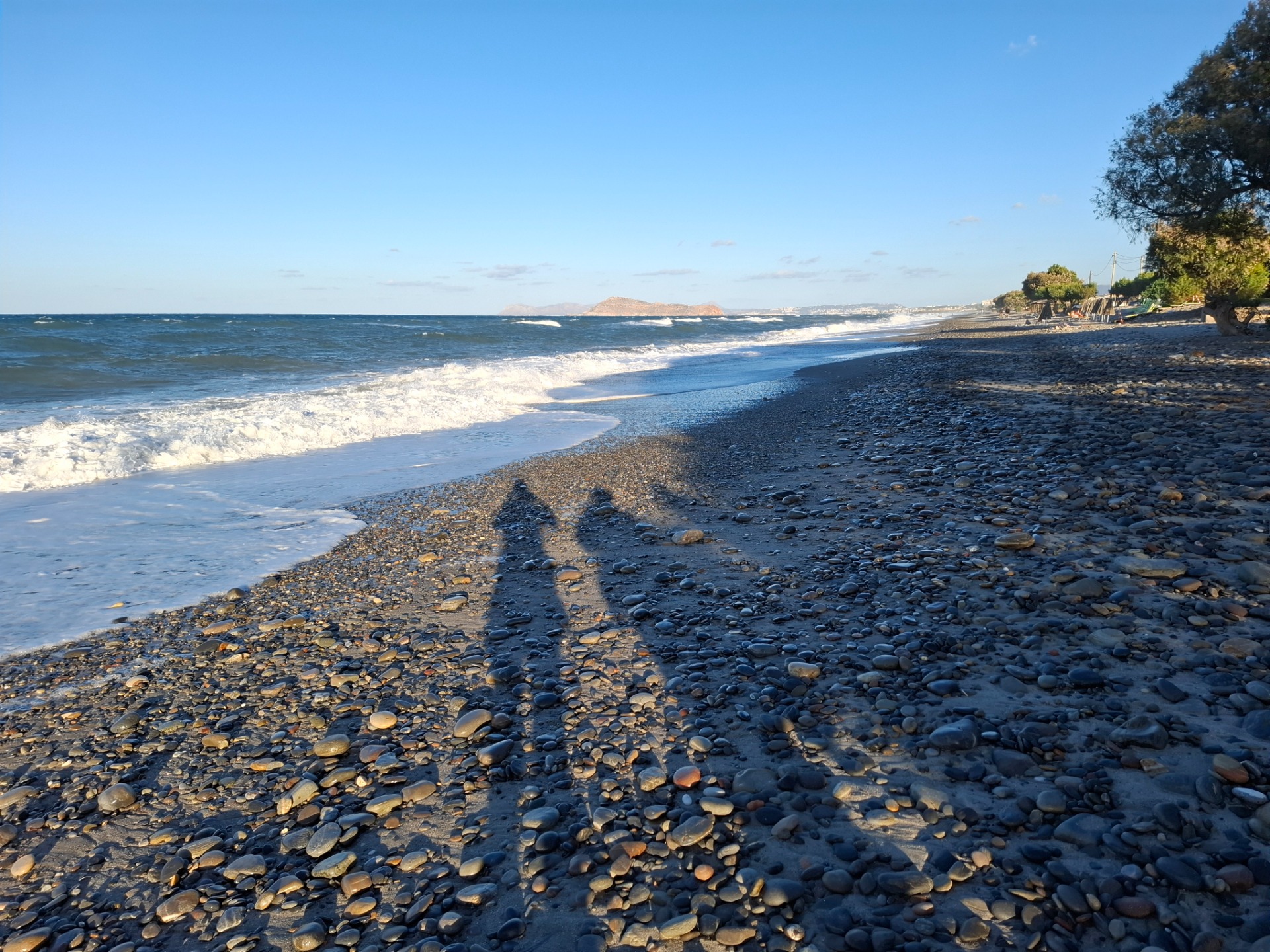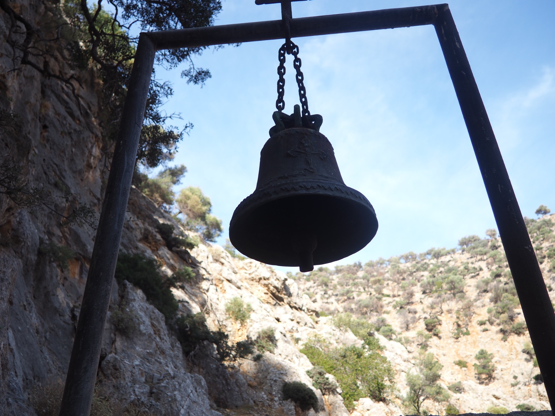 Ráno jsem se konečně donutila vstát a vyjít na svítání. Svítalo kolem půl osmé, tak to nebyl žádný problém, jen se mi nechtělo vylézat. U moře skoro nikdo nebyl. Užívala jsem si klid a šplouchání vln. Šla jsem pomalu podle vody a čekala, až sluníčko vyleze. Nakonec jsem se dočkala a rozhodně jsem nelitovala. Po návratu jsem s Renatou vyrazila na další studenou snídani. Po 9 30h přijel autobus, aby nás dovezl k soutěsce Agia Irini. Po vystoupení jsme s Renatou ještě zaběhly na toaletu v blízké restauraci a hurá dle instrukcí průvodkyně na trasu. Tahle soutěska byla krásná. Uprostřed se táhl vyschlý potok a všude byly krásně zelené stromy a hned na začátku se pásly kozy. Tentokrát jsme nešly jen z kopce dolů, ale často i nahoru. Lezly jsme po skalách a já podvědomě kontrolovala Renatu za sebou. Byla to moc pěkná cesta. Na konci jsme se sešli v pěkné taverně s venkovním posezením. Naši sousedi z ubytování tam již byli. Přisedly jsme a objednaly si kávu. Postupně docházeli i další účastníci zájezdu. Ve stanovený čas jsme opět nastoupili všichni do autobusu, který nás dovezl kousek dál do malého letoviska Sougia, které se moc líbí naší průvodkyni a ráda by zde strávila dovolenou. Čekalo nás malé městečko s krásnou spíše oblázkovou pláží. Naše první cesta vedla ke kostelu archanděla Michaela. Byl sice zavřený, ale moc pěkný. Vedle kostela byl zavěšený zvon. Od kostela jsme sešly na pláž a přemýšlený, zda se půjdeme vykoupat či ne. Renata se moc koupat nemusí . Já zkusila jít kousek vodou, ale oblázky mi nedovolovaly jít. Po chvíli jsem to vzdala. Voda se mi zdála studená. Na pláži leželo pár naháčů. Došly jsme až za skály a vrátily se zpět. Rozhodly jsme se radši posvačit. Dala jsem si tzatziky a místní pivko. Po svačince jsme ještě zašly do místního supermarketu dokoupit vodu. Nakonec jsem odlovila kešku. Ve stanovený čas se opět celá skupina sešla u autobusu a vyrazily jsme přes hory zpátky na ubytování. Výhledy z autobusu byly také krásné. Cestou nám průvodkyně vyprávěla o místní historii, zvycích a přemnožených kočkách.