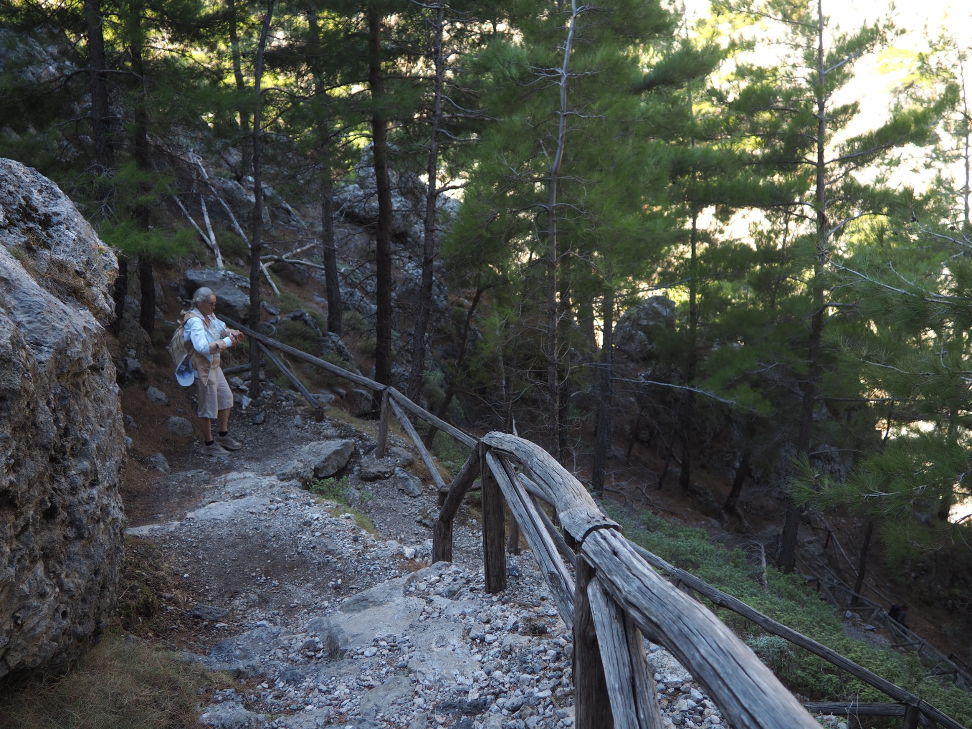 Ráno nás čekala snídaně v 8h. V 9h jsme už byli všichni nastoupení a čekali na autobus. Ten měl poněkud zpoždění, ale nakonec nás dovezl k soutěsce Imbros. Autobus zastavil u restaurace nad soutěskou. Skoro všichni jsme si došli na toaletu a pomalu začaly procházet soutěskou, o které nám v autobuse vyprávěla Helena. Došli jsme k budce a zaplatily vstupné. Dále jsme šlapaly většinou z kopce dolů mezi skalami soutěsky. Obdivovaly jsme různé stromy i rostliny. Já šla první a Renata se držela za mnou. Podvědomě jsem jí tak trochu hlídala. Na jednom místě byly stěny hodně blízko u sebe. Sestoupaly jsme skoro 600 výškových metrů dolů a došly k taverně Komitades. Byly jsme tu celkem brzo a měly čas na občerstvení. Renata si objednala tzaziky a já řecký salát. Samozřejmě došlo i na pivko. Skupinka se postupně začala scházet. Přišly i naše kamarádky Marta a Věrka. Po dobrém jídle jsme popošly kousek nad restauraci k autobusu, který nás odvezl zpět k ubytování. Ještě jsme stihly dokoupit vodu a projít se podle více rozbouřeného moře. Večeře byla opět dost studená, ale jíst se dala.